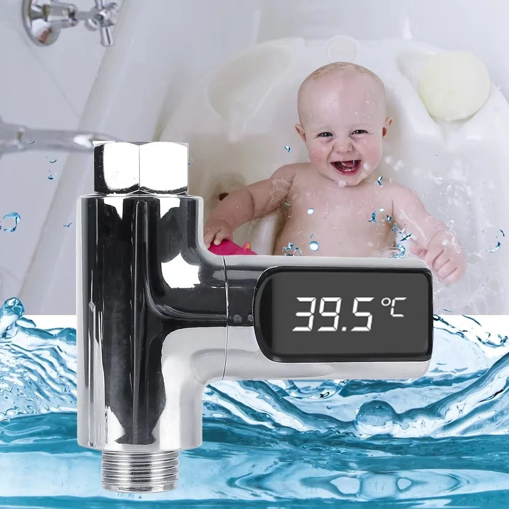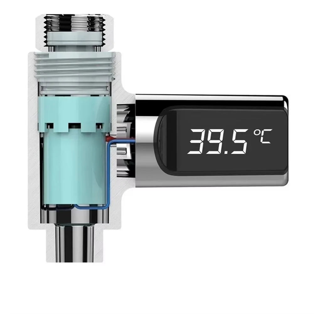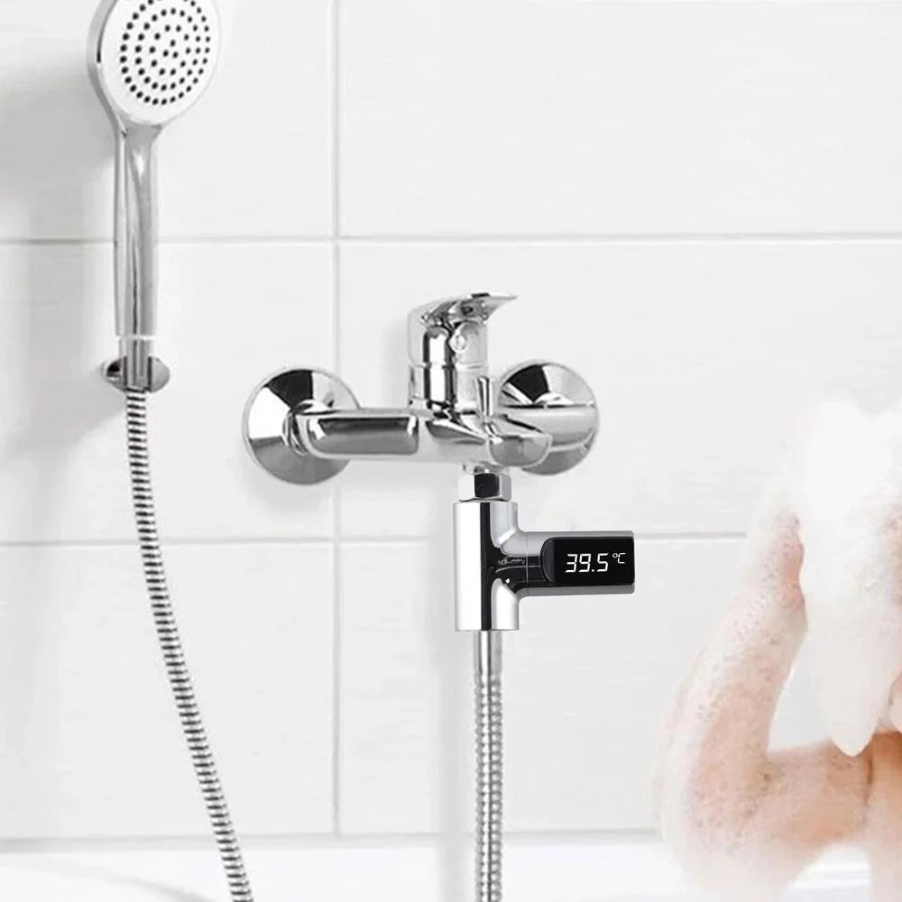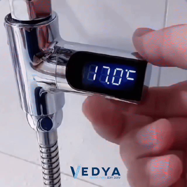 מד חום דיגיטלי חכם המציג את טמפרטורת המים בזמן אמת, כדי שתדעו אם המים חמים או קרים לפני השימוש. מתחבר בין צינור המים לראש המקלחת או האמבטיה ומציג את הטמפרטורה על צג דיגיטלי ברור.